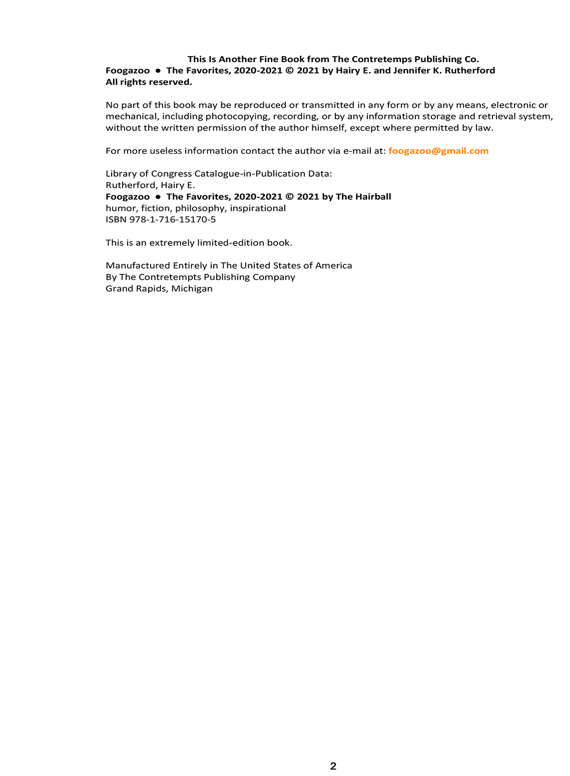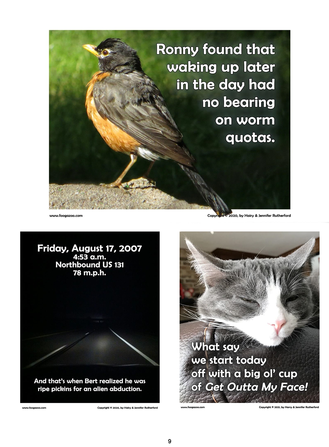 A Special Edition was created for no other reason than it was a good couple of years at Foogazoo. This paperback book contains 250-plus Foogazoo Panels, collected and curated by none other than Jennifer. A great book for your coffee table, your book shelf, or that little magazine rack you have in your bathroom.